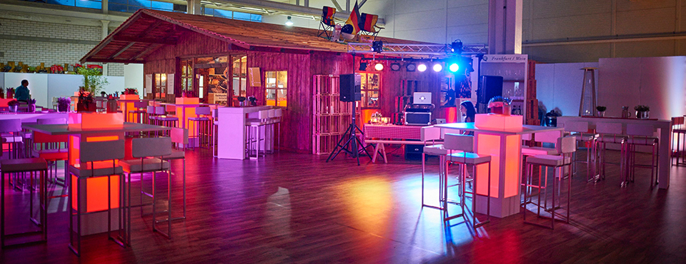 - Raumgröße Halle, inkl. Almhütte: 1.100 qm